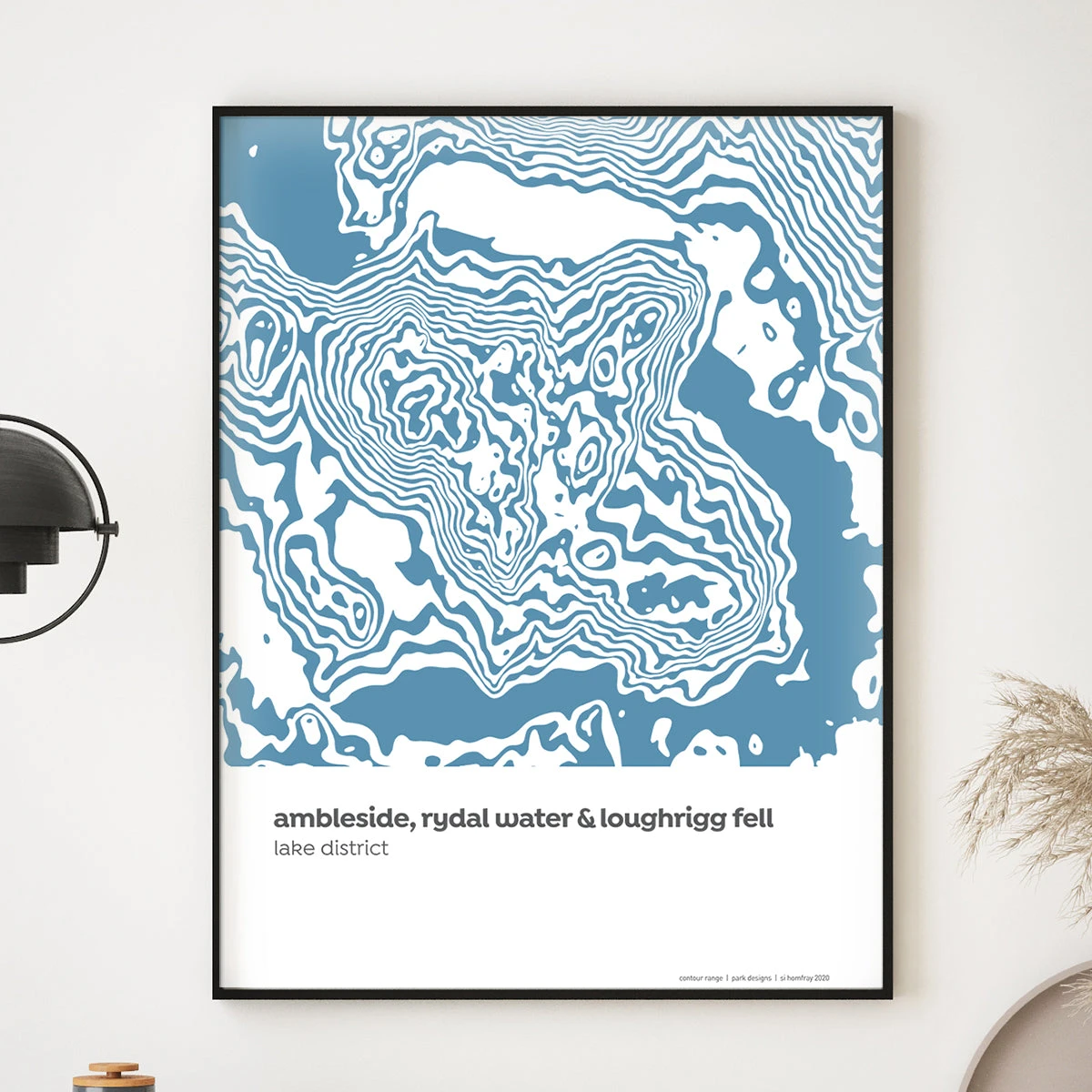 Title: Ambleside, Rydal Water & Loughrigg, Lake District, Contour Print