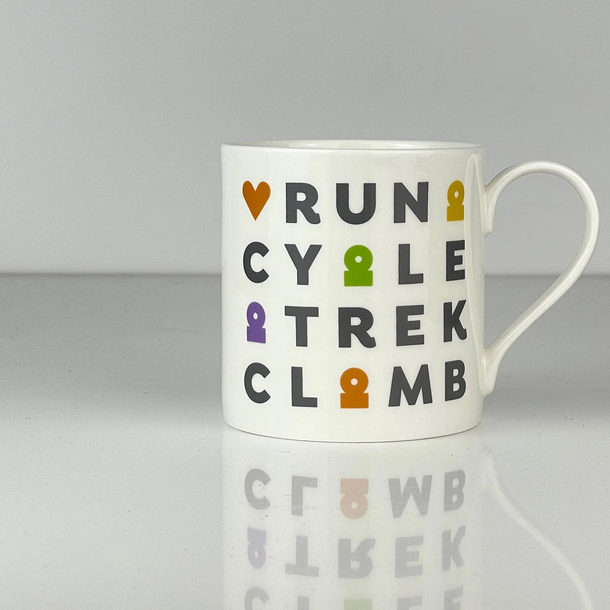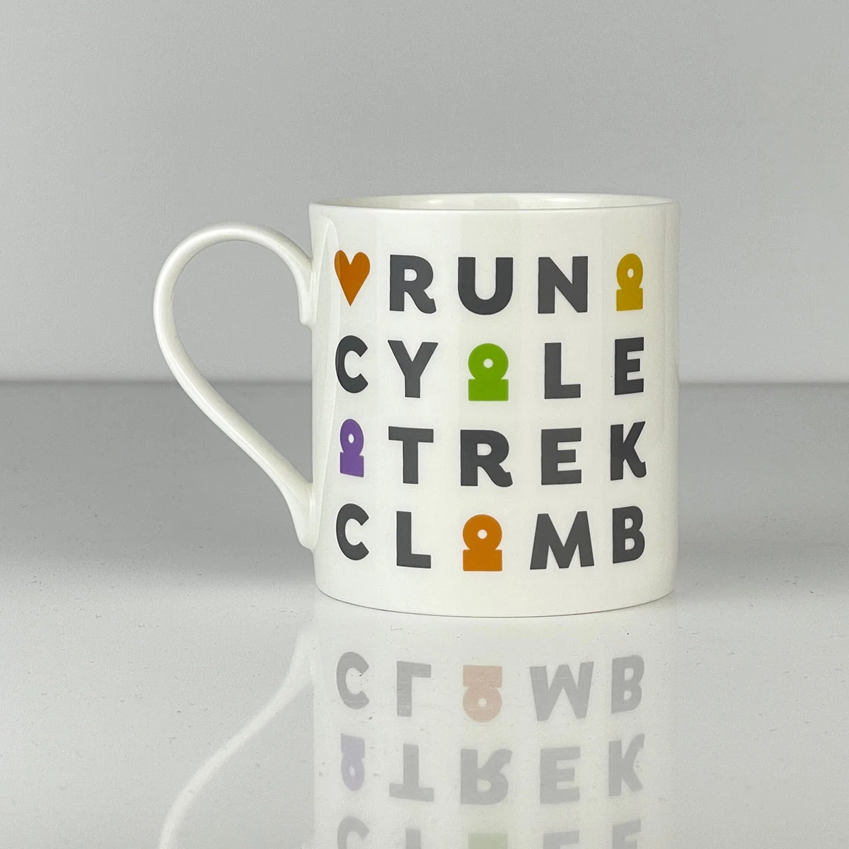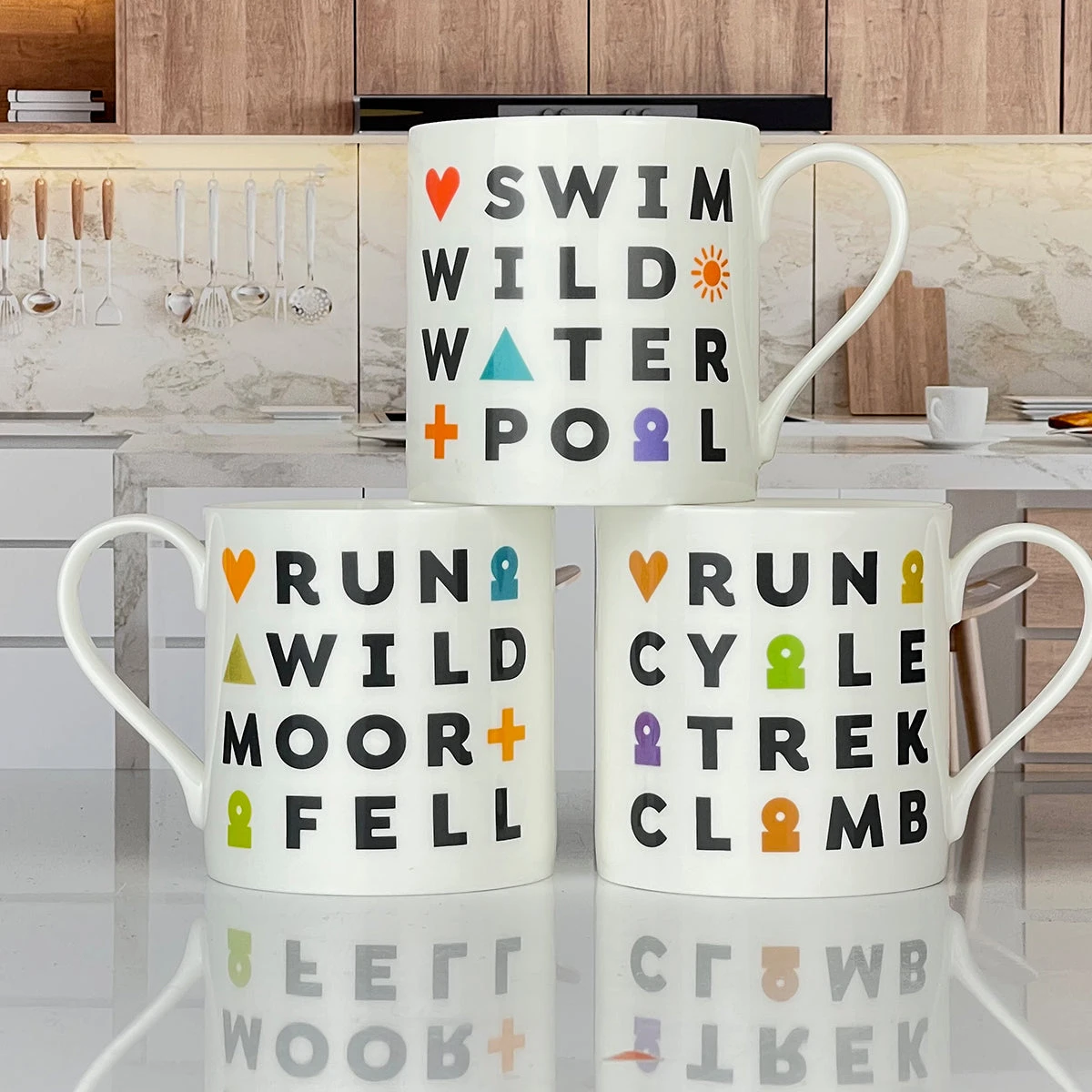 Fine Bone China Mugs – Set of 3 – Swim, Cycle, Climb and Run