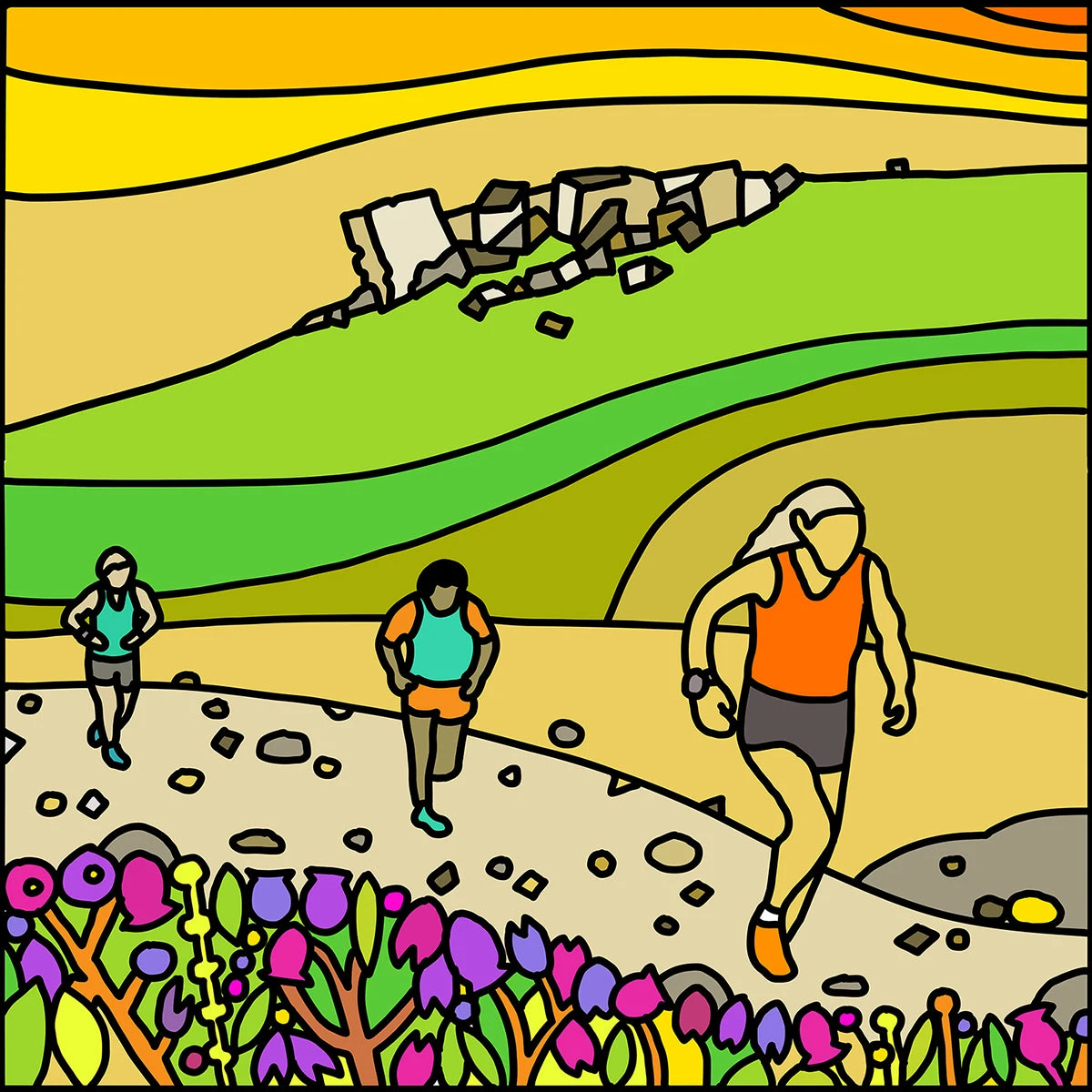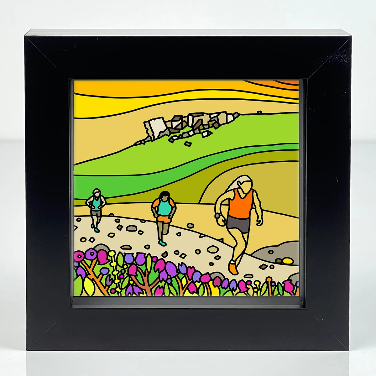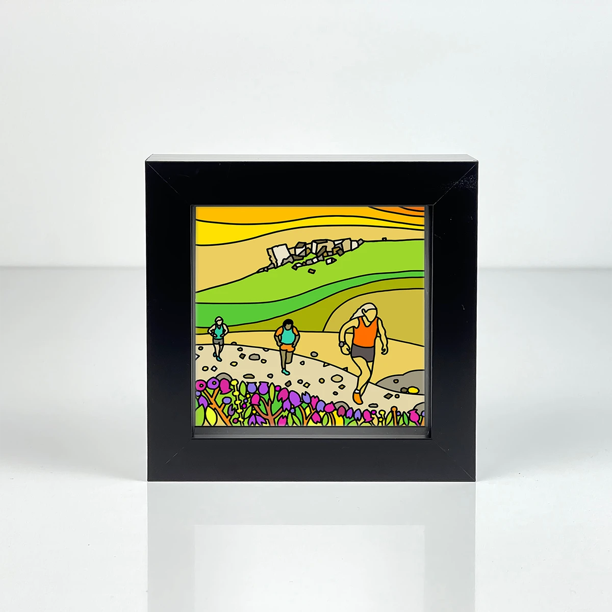 This little drawing features Si’s favourite pastime, getting lost in the zone on the moorland upland of Higgar Tor, Carl Wark and Stanage Edge on fell running excursions from the Hathersage gallery and office in the Peak District National Park.
