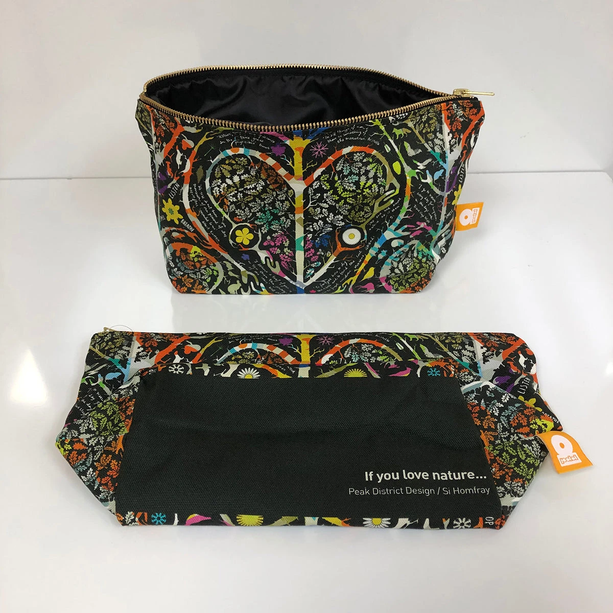 The quotations reinforce the wonderful benefits of nature to humankind. The colourful embedded pattern is Si Homfray’s work, a Peak District Design work titled Wildlife experiences.