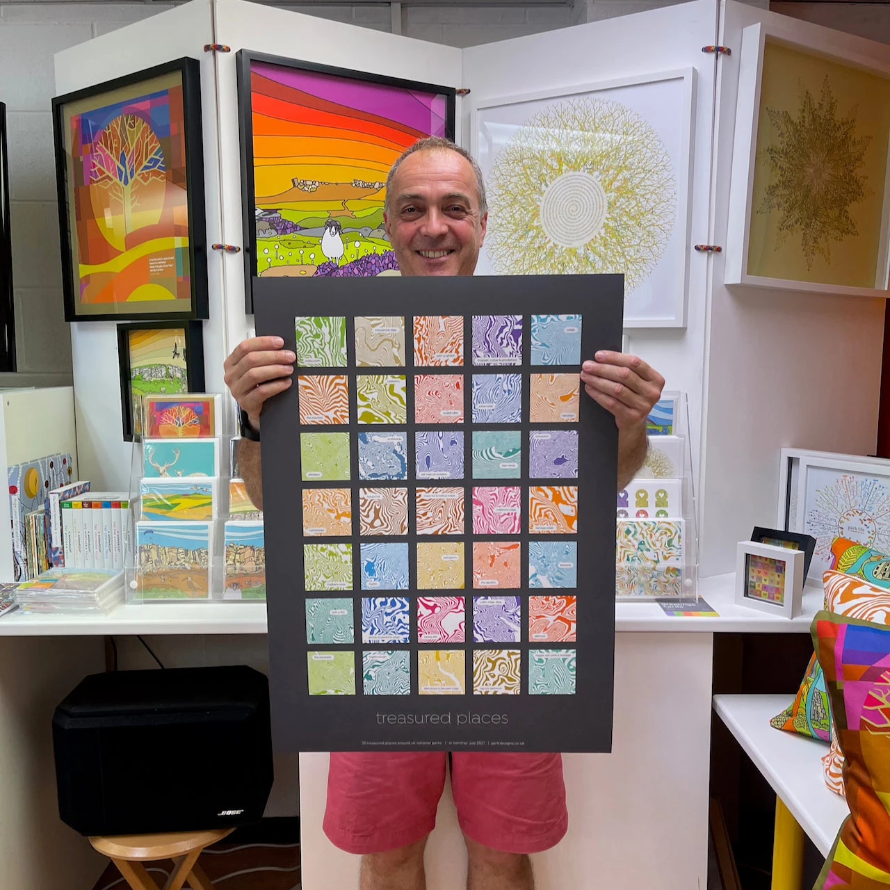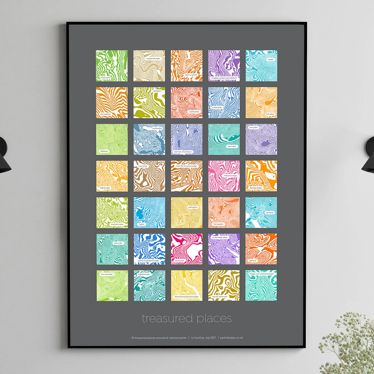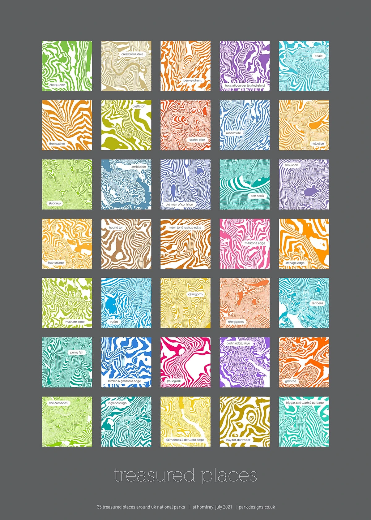 Title: Park Designs – 35 Treasured places around the UK’s national parks Contour Print on grey