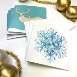 Christmas Cards – Iconic – Super Snowflake & Red Deer – Set Of 8