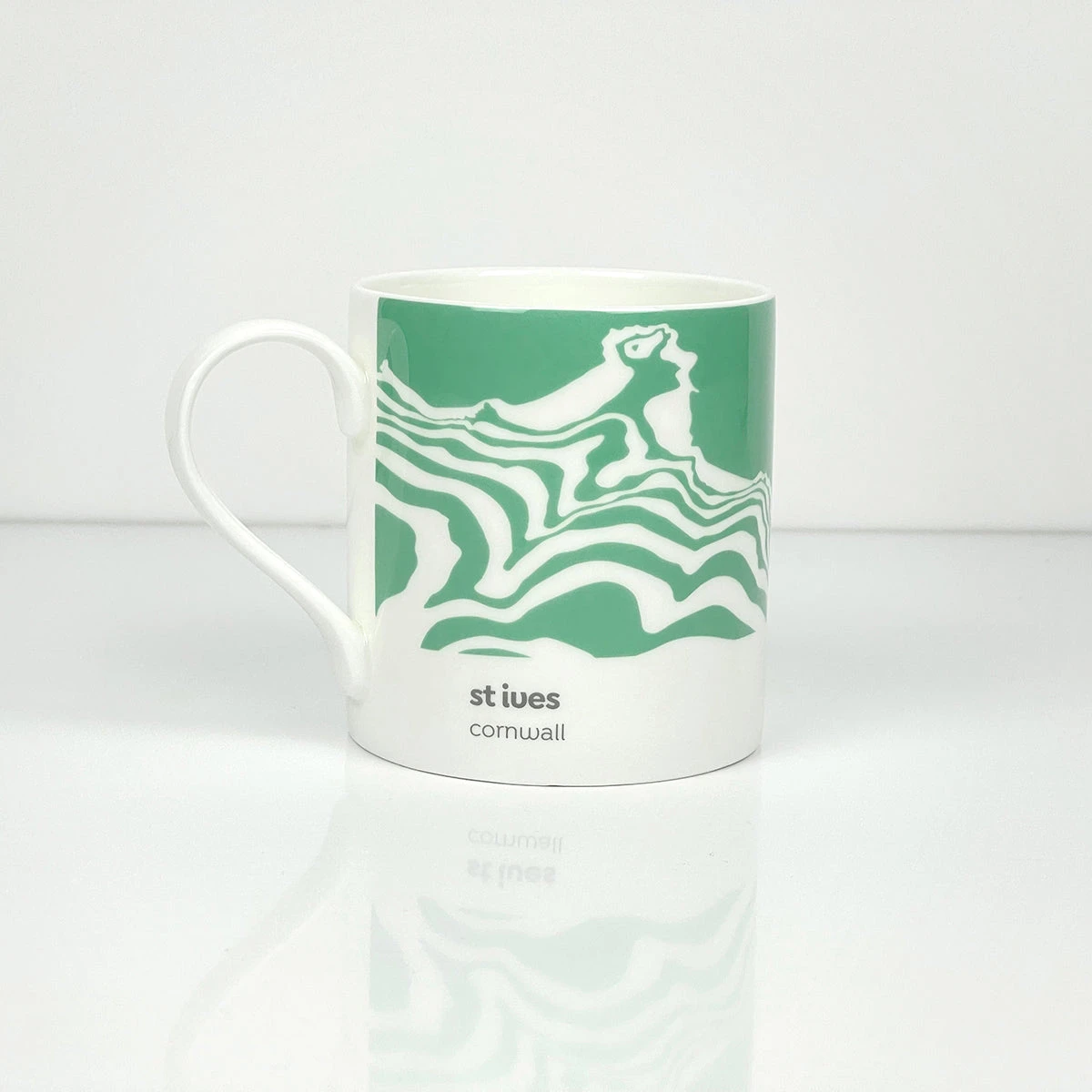 A Fine Art Ceramic Mug featuring the St Ives Contour Design in a mint fresh green.