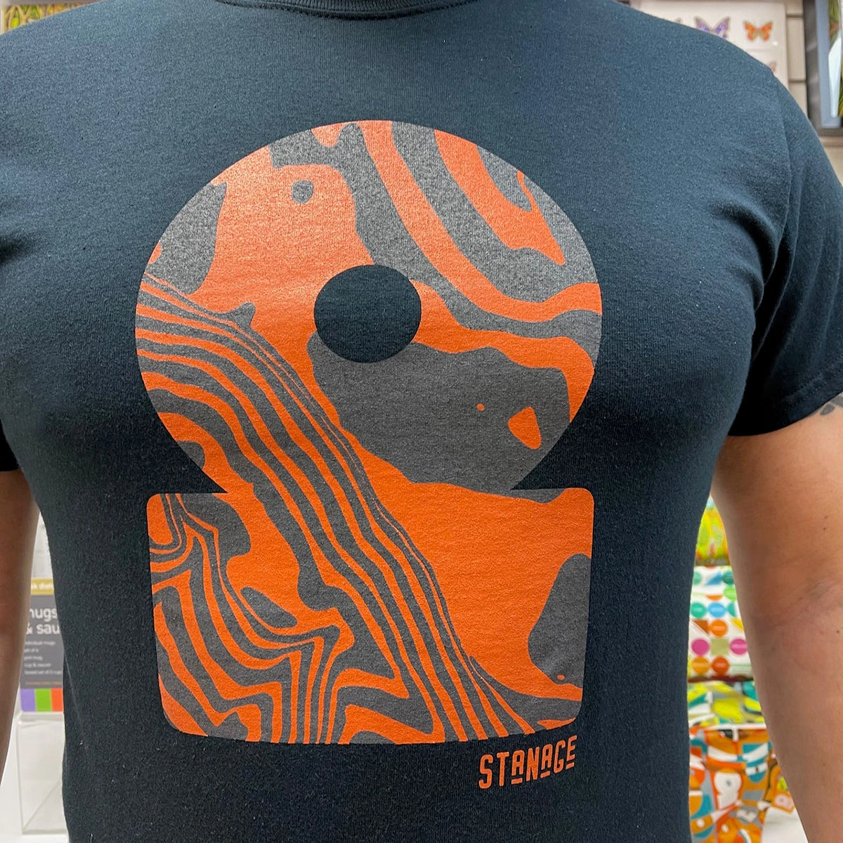 Colour: Orange and Dark Grey on Black Cotton.
