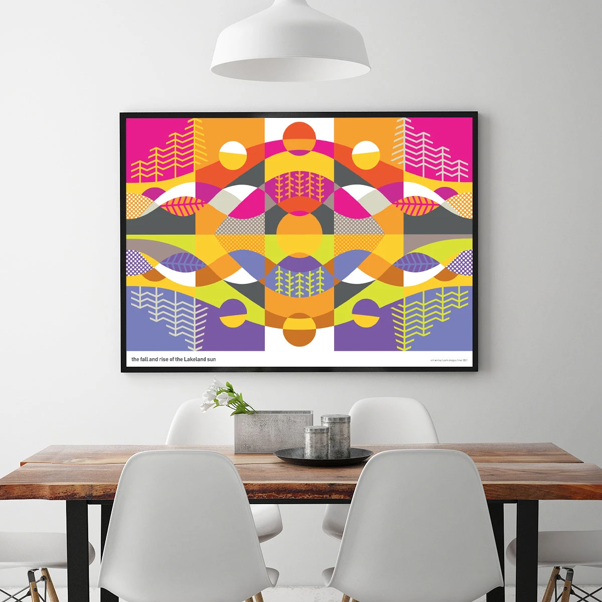 The fall and rise of the Lakeland sun is the companion piece to the Rise and Fall of the Lakeland Sun, the original Lake District design. It offers a sunset to the original sunrise.