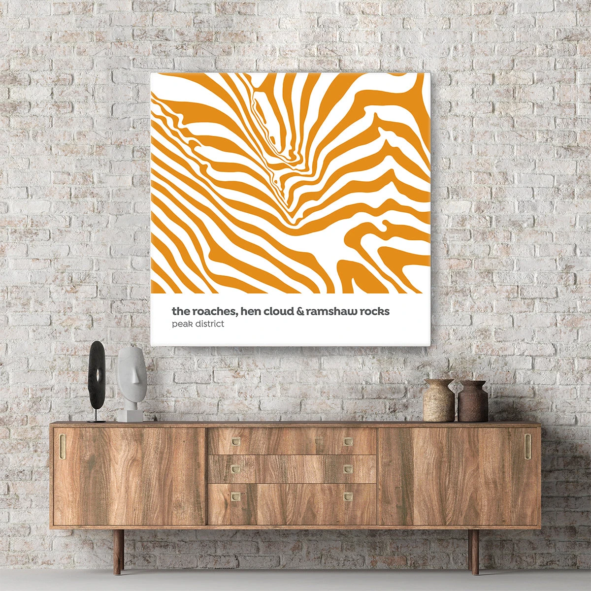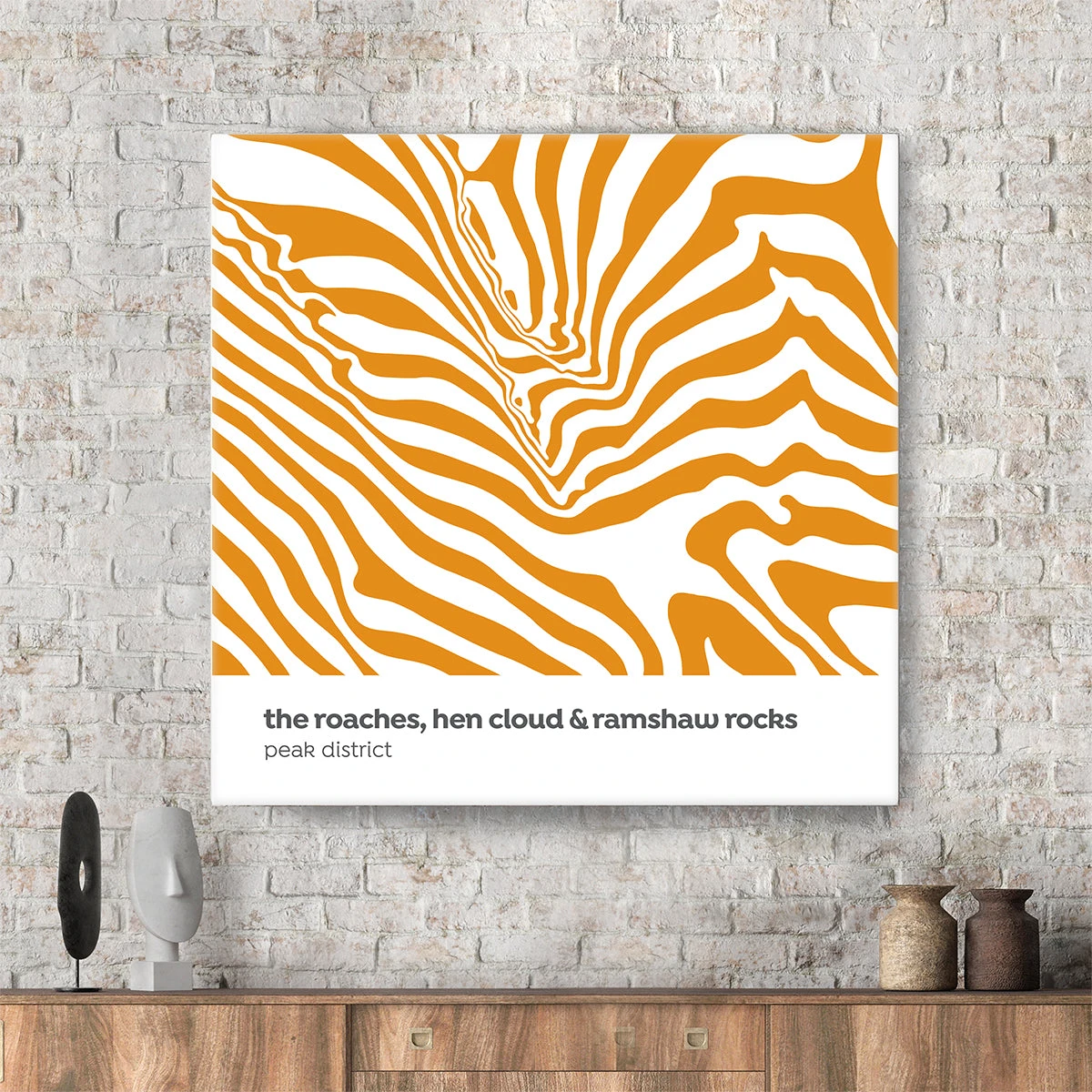 This particular design reflects the topography of The Roaches, Hen Cloud & Ramshaw Rocks in the Peak District in an orange colour.