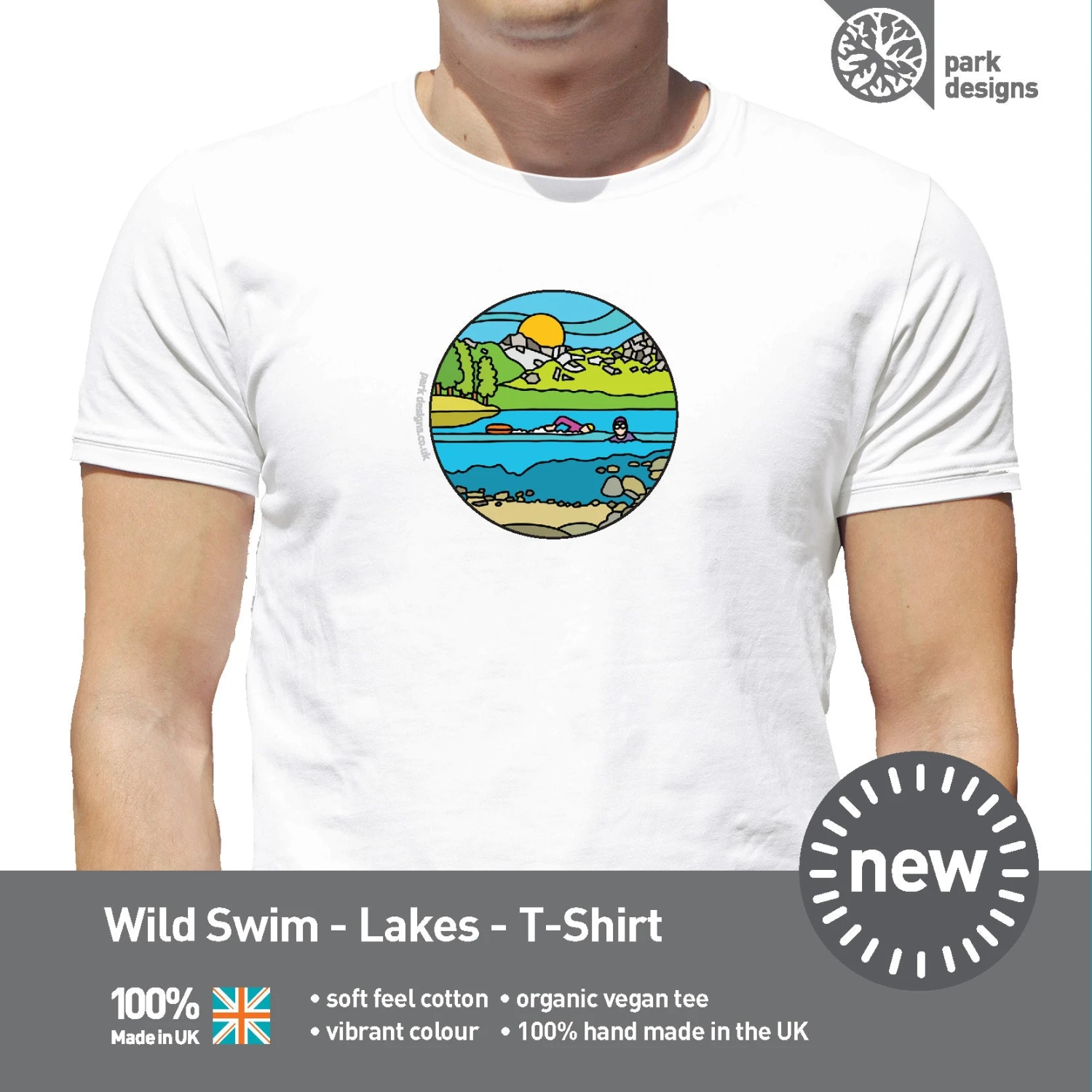 Title: Wild Swimming – Lake District – Blea Tarn – Design T Shirt